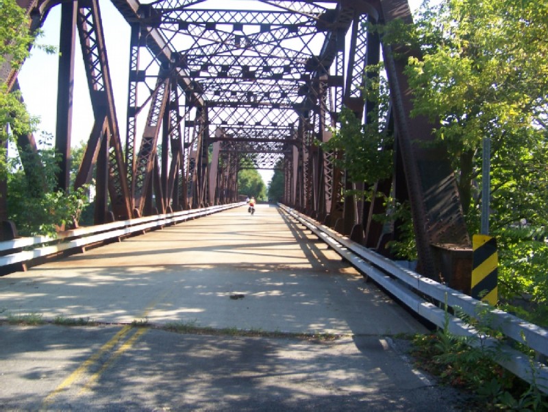 Shortly afterwards, a detour put us back on Route 5 in Rotterdam Junction. Just past SI Group chemical plant and railroad crossing, on a street to the right along side the Dirty Pig biker bar and bar-b-q joint, there was a bike route sign. I gave it a try; but after 2 blocks the street turned into rough gravel and a steep downhill. So I turned around, figuring I would come across the trail soon enough, which turned out to be after .4 miles. The trail ran both ways; so turning at the Dirty Pig would have taken you to the trail.